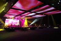Screen Technics supplied the 9 screens which comprised aluminium box truss style lace-out frames and welded PVC RearTech material, while Sony supplied the multiple projection system to stunning results.